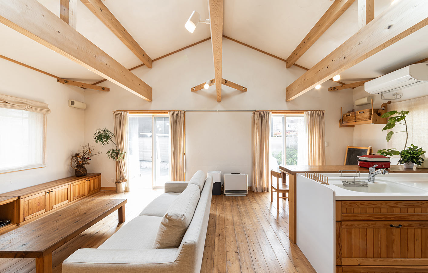 ↑ gemütliches Wohnzimmer mit KVH-Balken